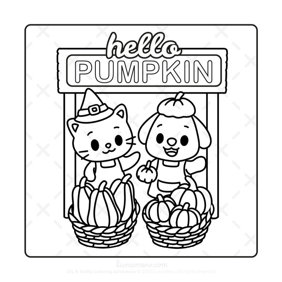 Starting with a 3 FREE coloring pages from Lily&Teddy Magical Halloween + a monthly coloring page PDF in your inbox!This month’s freebie is "Hello Pumpkin"